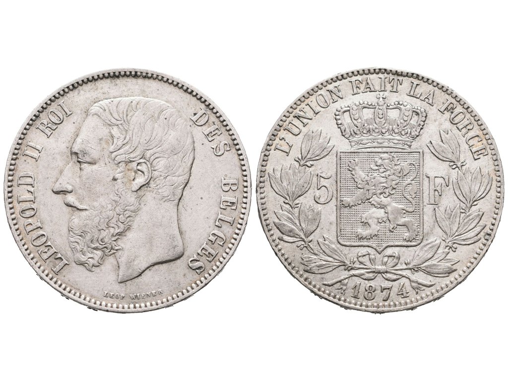 Belgie, 5 Frank 1874