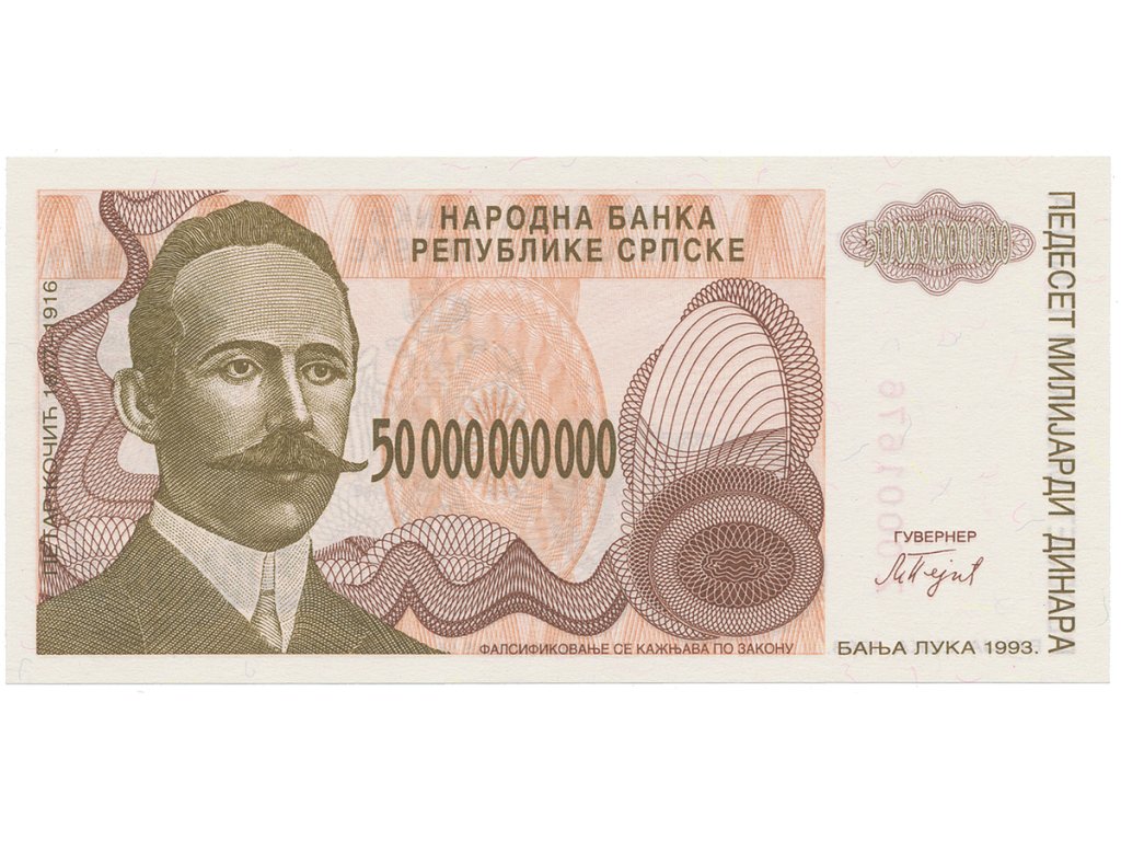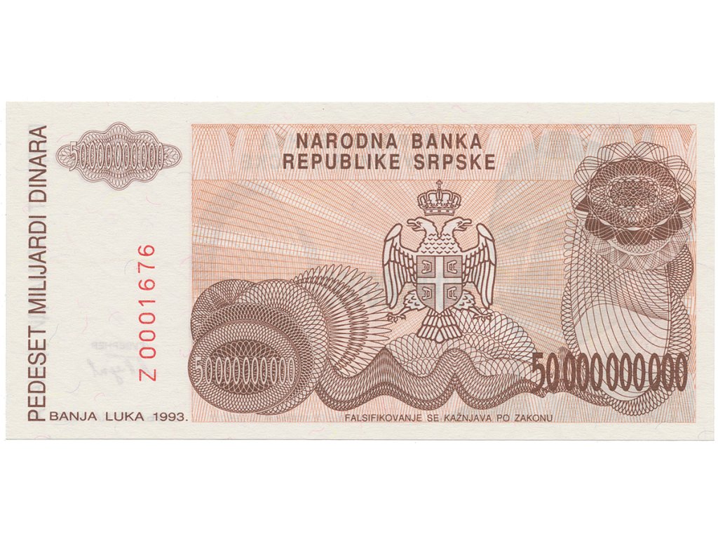 Bosna a Hercegovina, 50 Milijardi Dinara 1993, nevydaná, náhradní série Z, P.157a