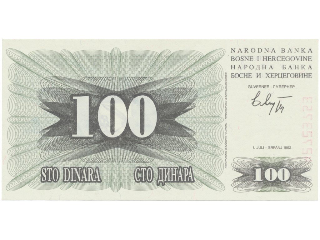 Bosna a Hercegovina, 100 Dinara 1992, P.13a