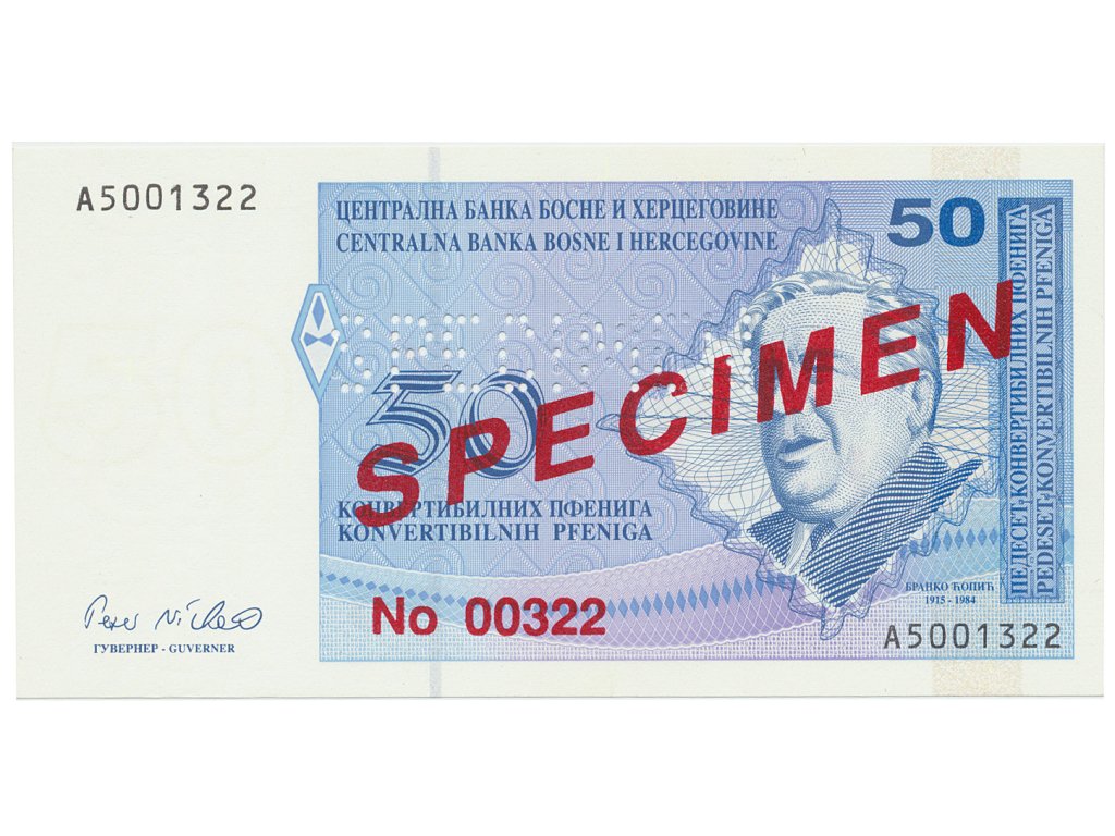 Bosna a Hercegovina, 50 Konvert. Pfeniga (1998), anulát - SPECIMEN, P.58s