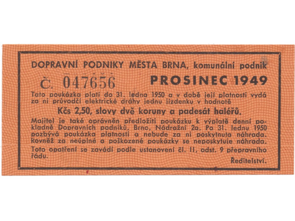 Brno - elektrické dráhy, 2.50 Kčs prosinec 1949, HH.16.1.11