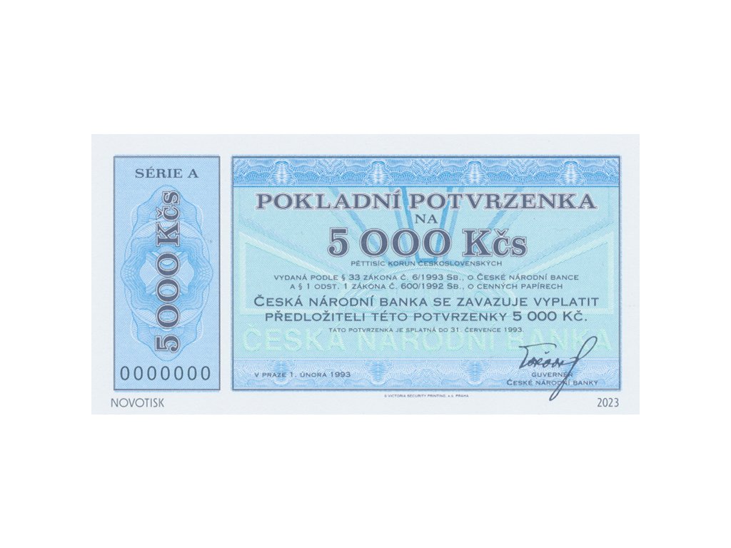Česká republika, 5000 Kčs 1. 2. 1993, Hej.CZ2, součást kompletu novotisků vytištěných STC Praha, náklad 500 ks