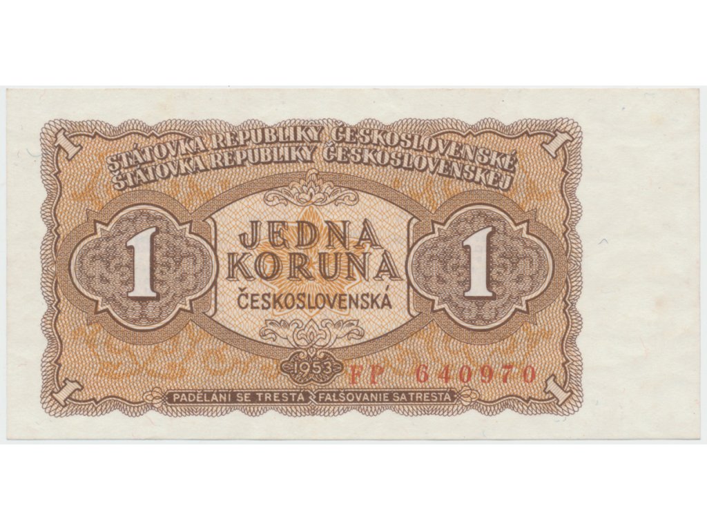 Československo, 1 Koruna 1953, tisk Praha, série FP, Hej.89b1