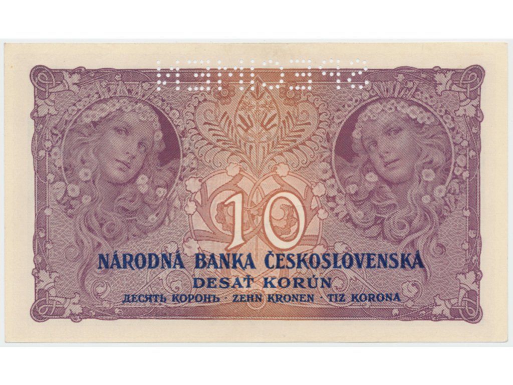 Československo, 10 Koruna 1927, serie B, tisk TB NBČS, perf. 1x SPECIMEN, Hej.22bB.S1