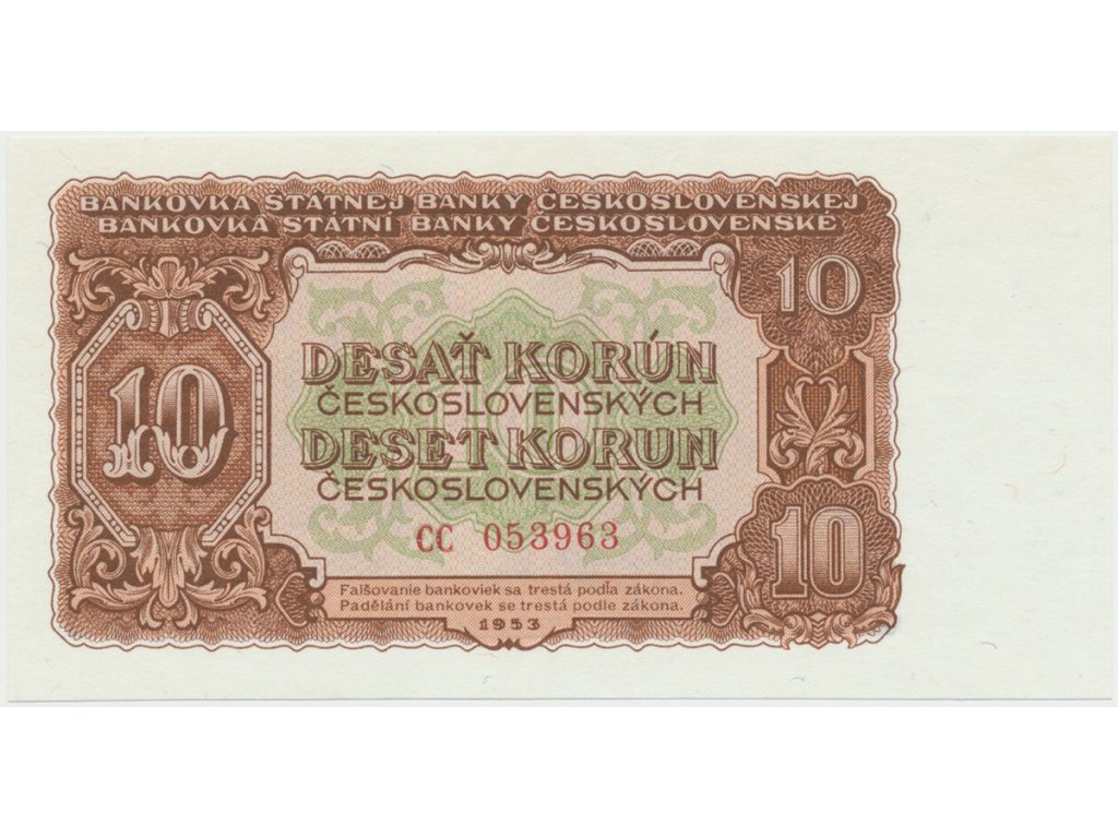 Československo, 10 Koruna 1953, tisk Moskva, série CC, Hej.92a1