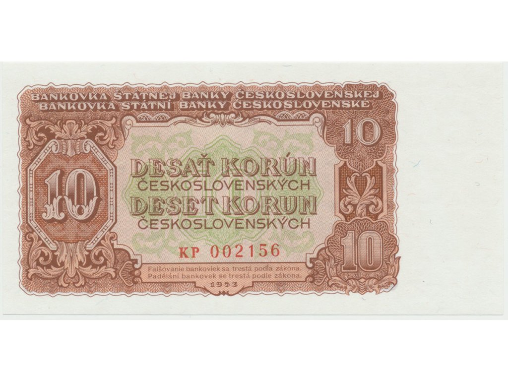 Československo, 10 Koruna 1953, tisk Praha, série KP, Hej.92b
