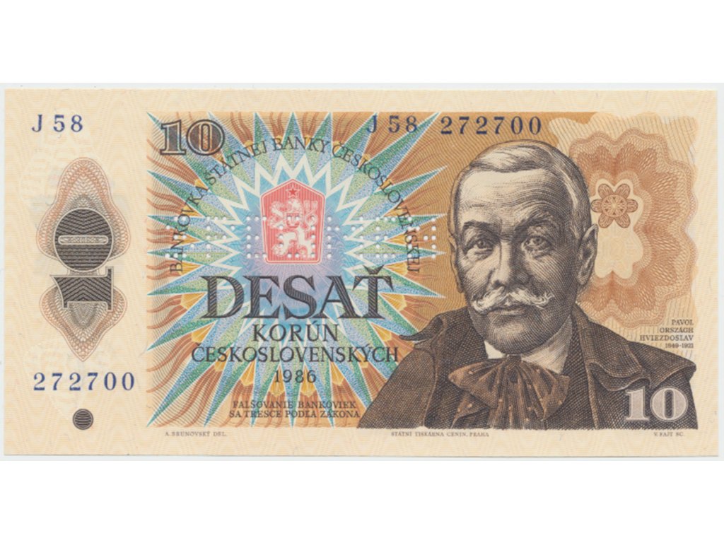 Československo, 10 Koruna 1986, široká vysoká série J 48, bankovní vzor, Hej.107bJ.V2