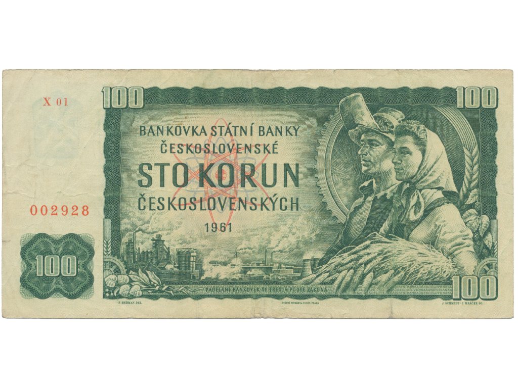 Československo, 100 Koruna 1961, I. vydání, první série X 01, Hej.101dX