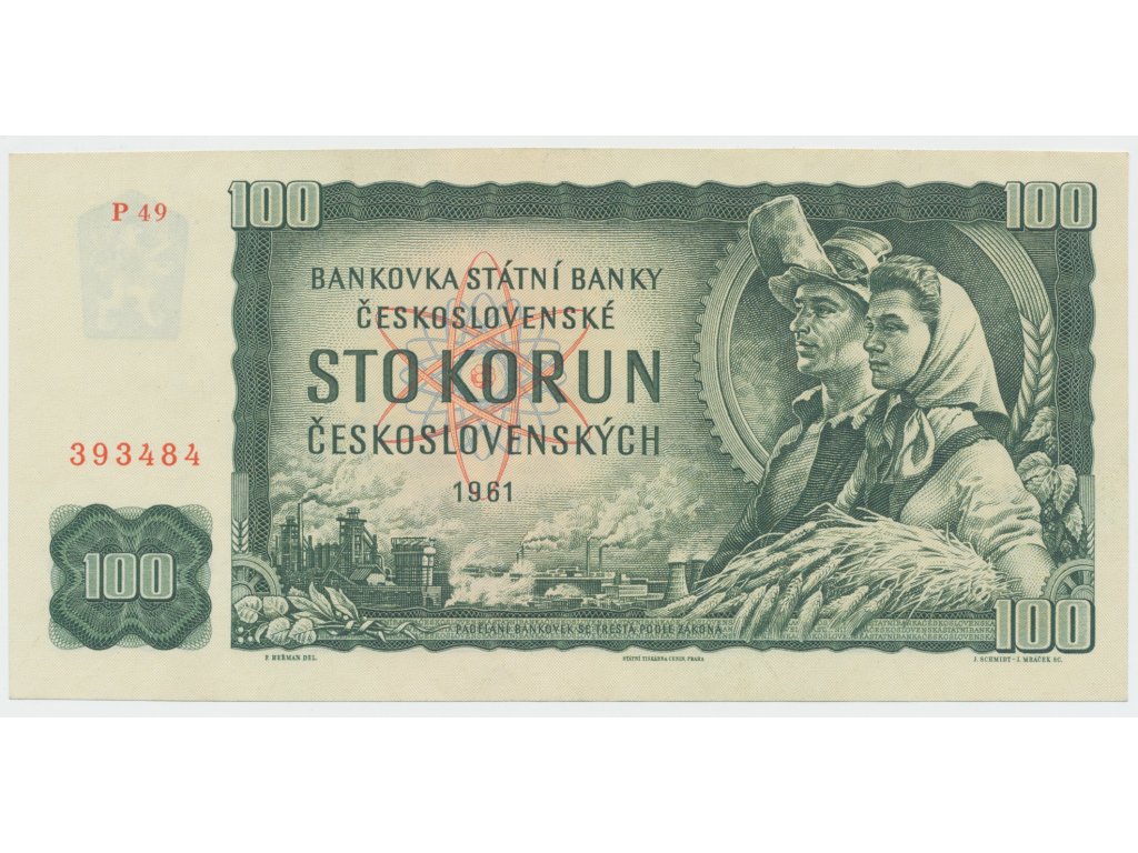 Československo, 100 Koruna 1961, série P, Hej.101dP