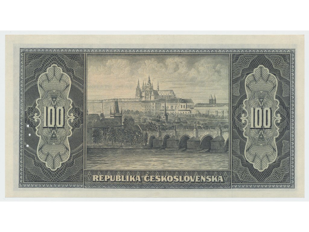 Československo, 100 Koruna b.d. (1945), perforace 3 md v obloučku, Hej.74a.S2