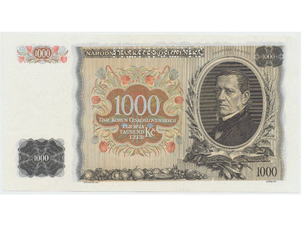 Československo, 1000 Koruna 1934, perf. 1x SPECIMEN, Hej.27a.S1