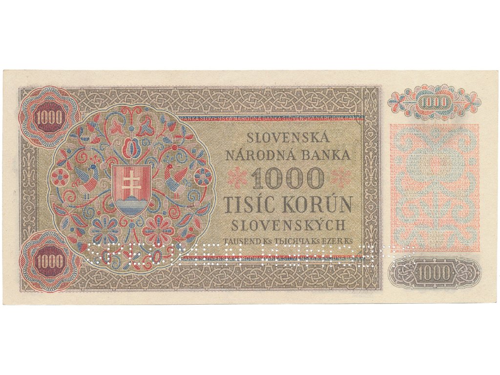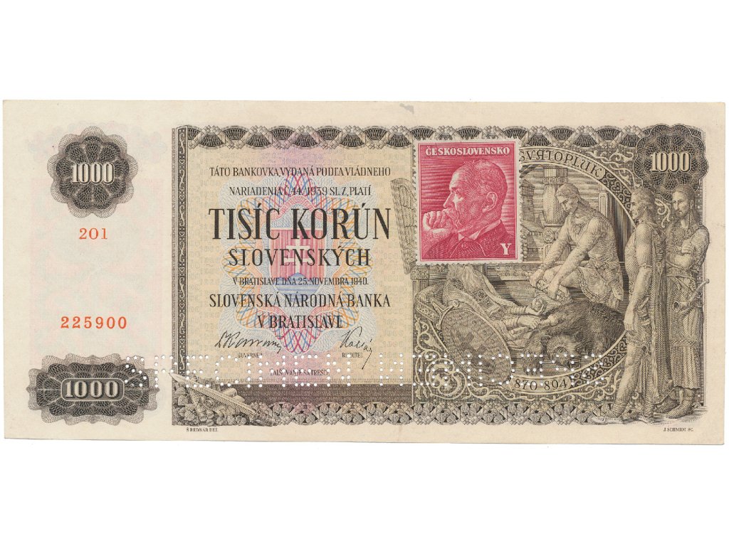Československo, 1000 Koruna 1940/1945, kolkovaná, perf. 2x SPECIMEN dole, Hej.65a1.S2