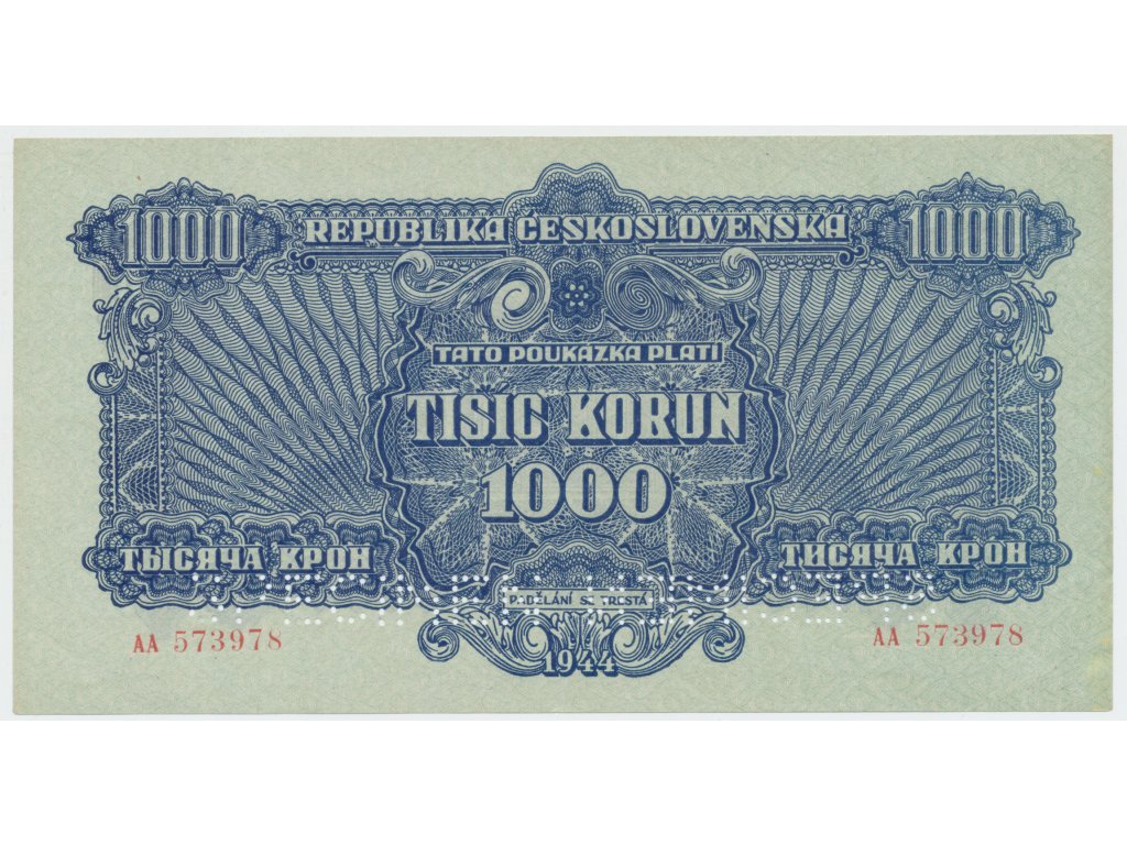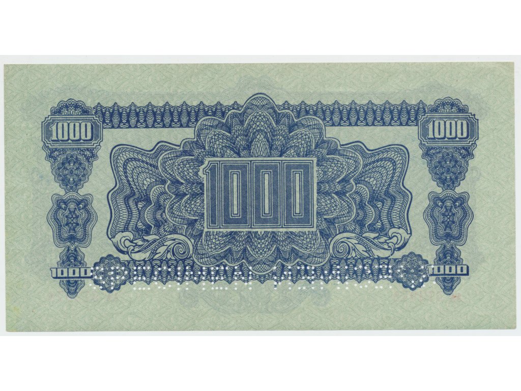 Československo, 1000 Koruna 1944, perf. 2x SPECIMEN dole, Hej.61a.S3