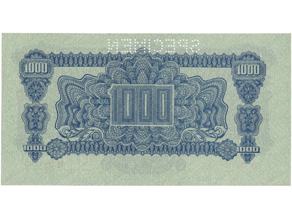 1000 Koruna 1944/1945, kolkovaná, SPECIMEN, Hej.68a.S1