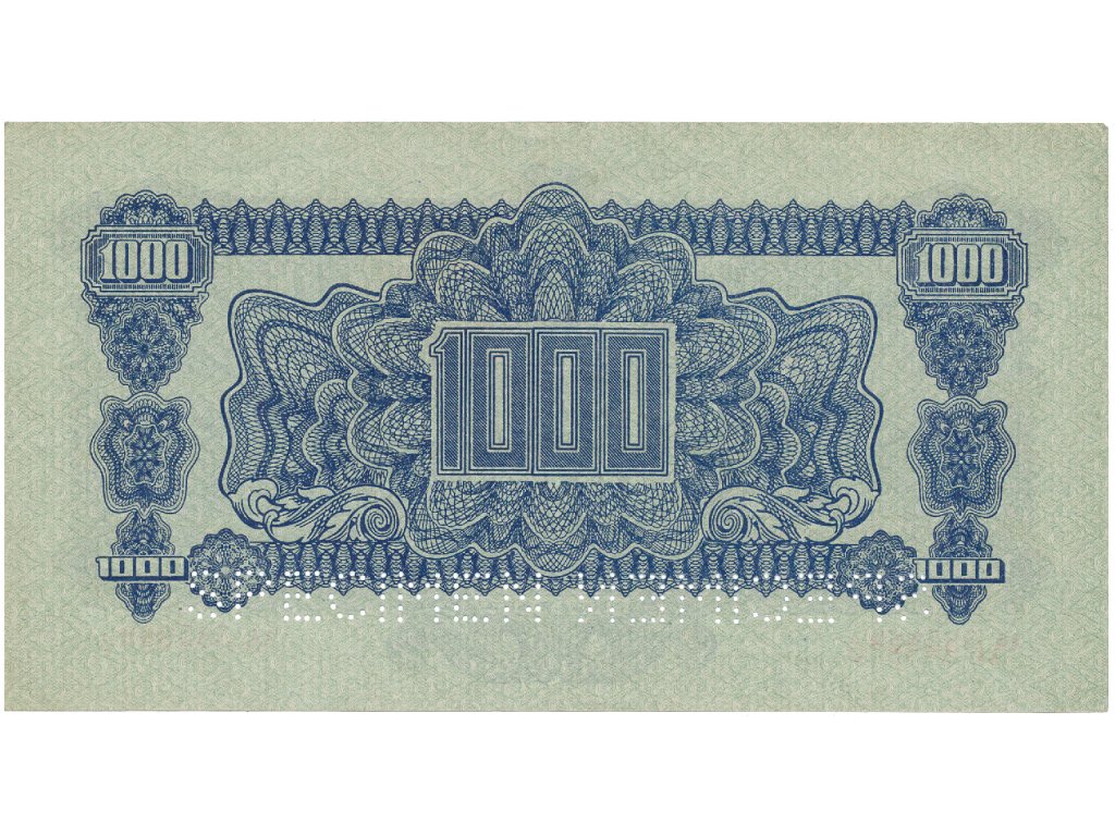 Československo, 1000 Koruna 1944/1945, kolkovaná, perf. 2x SPECIMEN dole, Hej.68a.S2