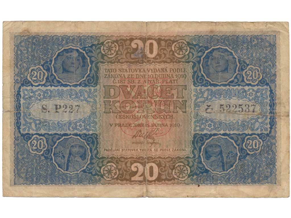 Československo, 20 Koruna 1919, serie P, Hej.10a