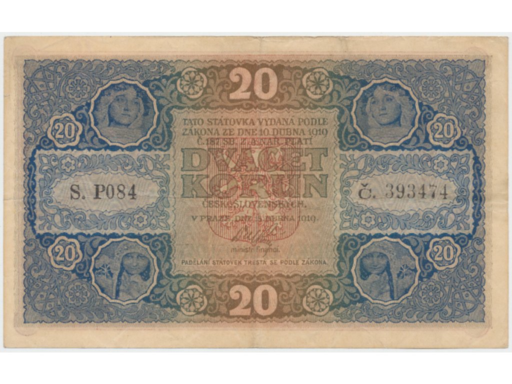 Československo, 20 Koruna 1919, serie P, Hej.10a
