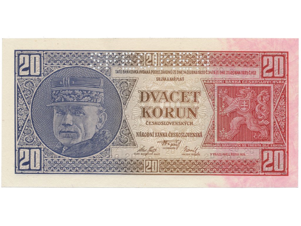 20 Koruna 1926, SPECIMEN, Hej.21c2.S1