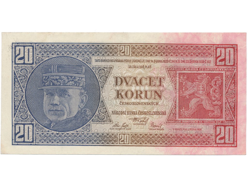 Československo, 20 Koruna 1926, tisk TB NBČS, Hej.21c2