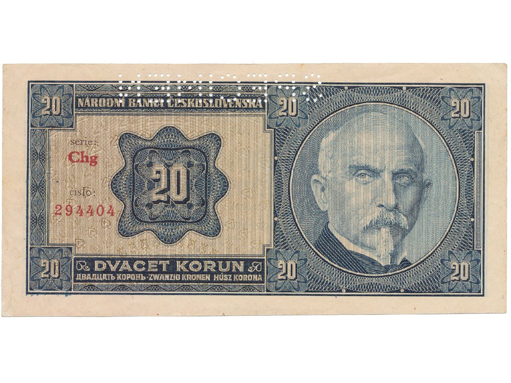 Československo, 20 Koruna 1926, série Chg, tisk TB NBČS, perf. 1x SPECIMEN, Hej.21c2.S1