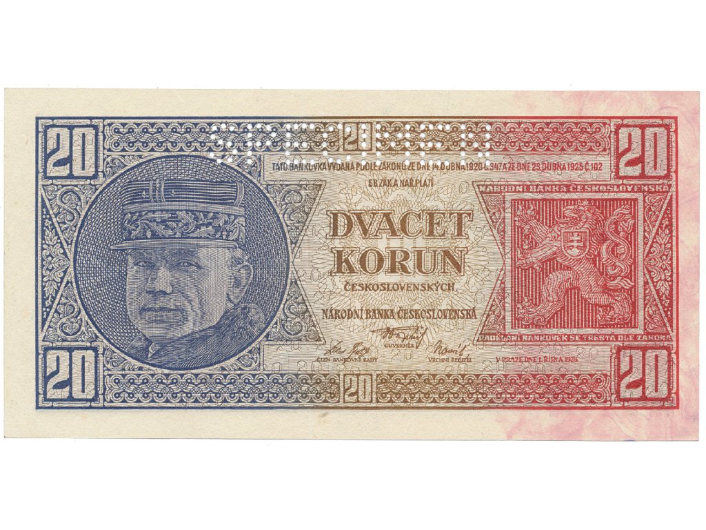 20 Koruna 1926, SPECIMEN, Hej.21c2.S1