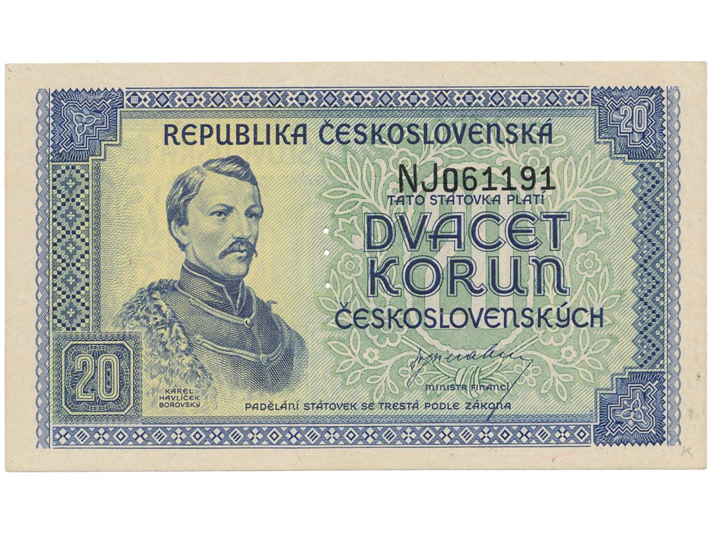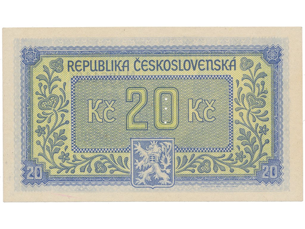 Československo, 20 Koruna b.d. (1945), perforace 3 md svisle, Hej.72a.S1