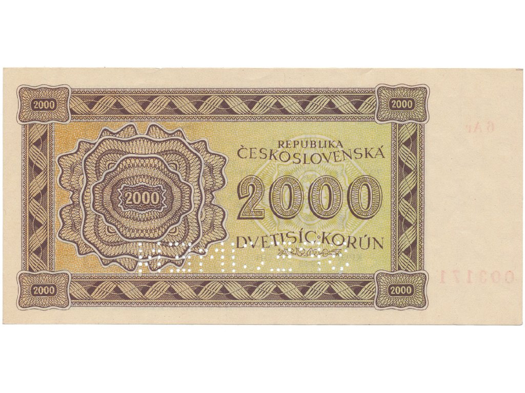 Československo, 2000 Koruna 1945, série s 1 číslem, 1x SPECIMEN dole, Hej.69a1.S2