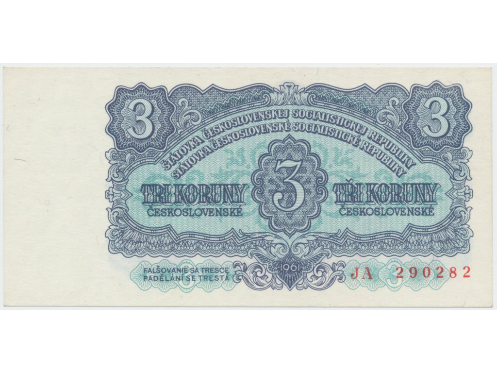 Československo, 3 Koruna 1961, série JA, Hej.98a