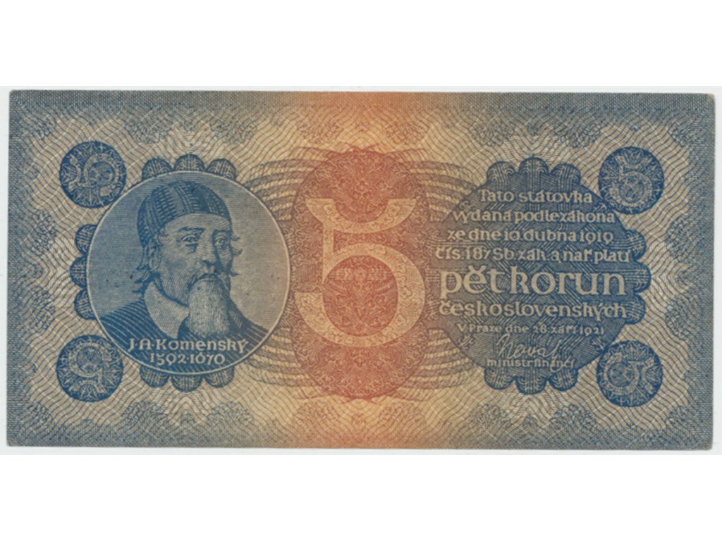 Československo, 5 Koruna 1921, série 3, Hej.18a