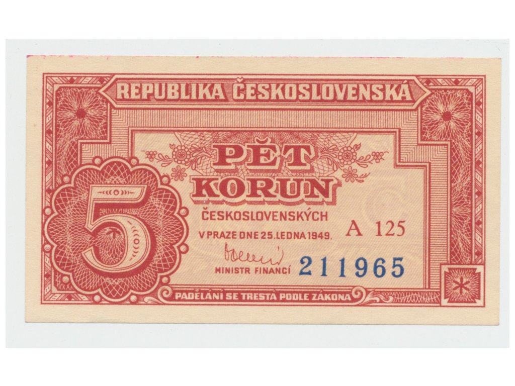 Československo, 5 Koruna 1949, série A 100 - 169, neperforovaná, Hej.83a3