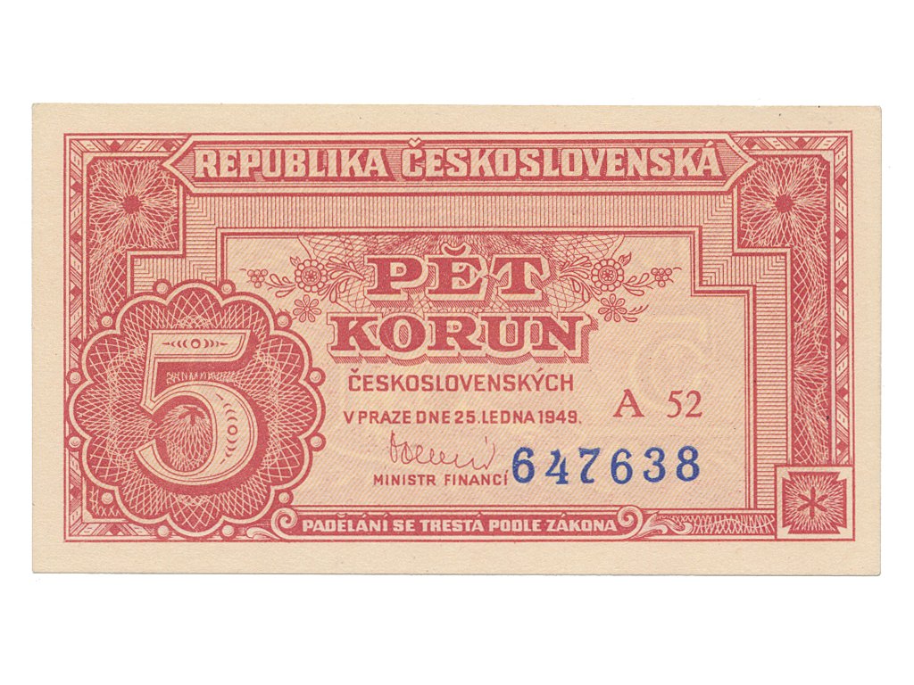 Československo, 5 Koruna 1949, série A 10 - 99, neperforovaná, Hej.83a2