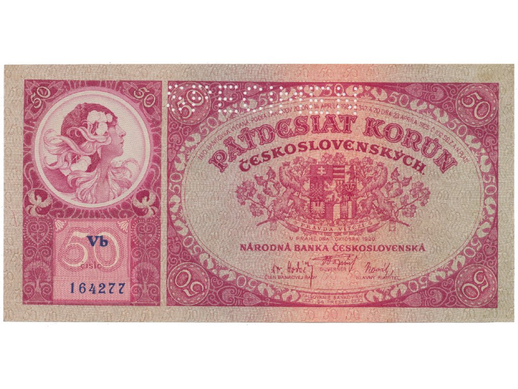 50 Koruna 1929, SPECIMEN, Hej.24b.S1