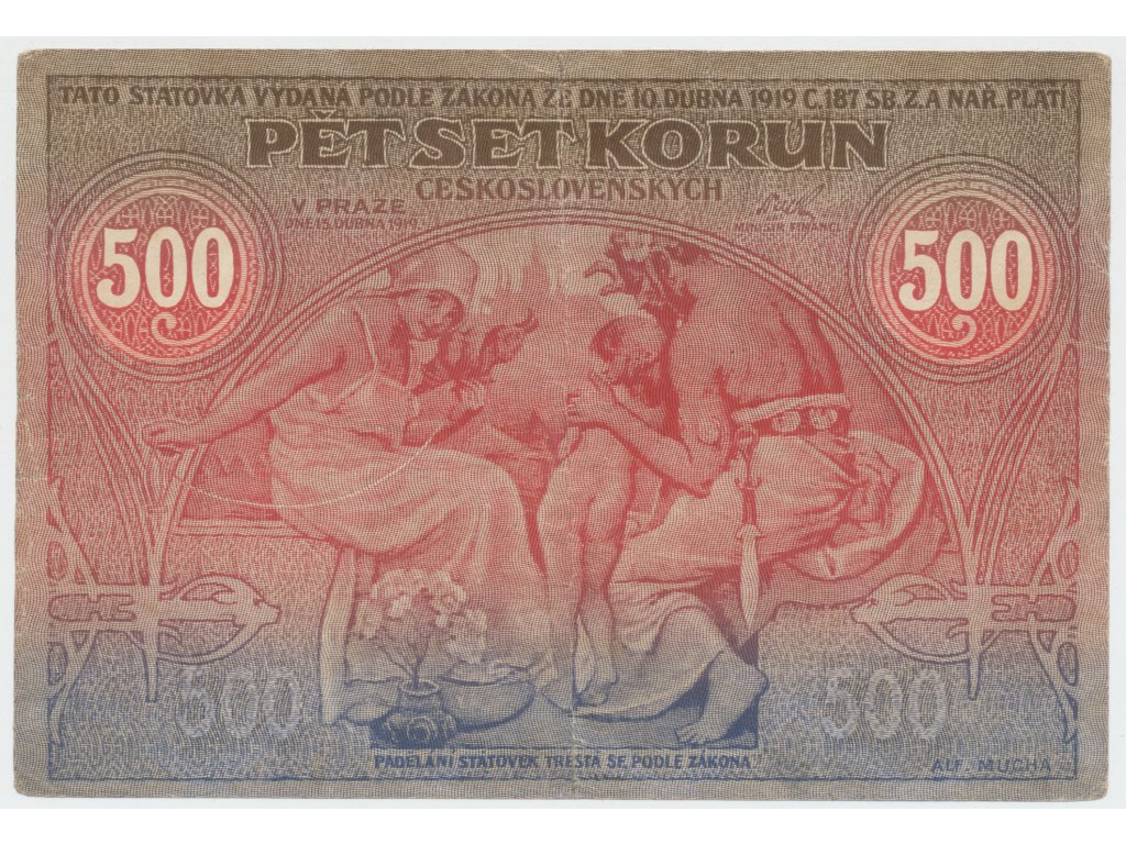 Československo, 500 Koruna 1919, série 014, dobový padělek "Meszáros", Hej.13P2