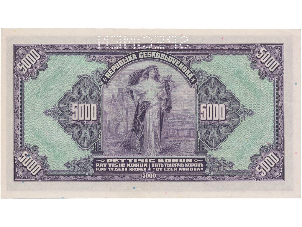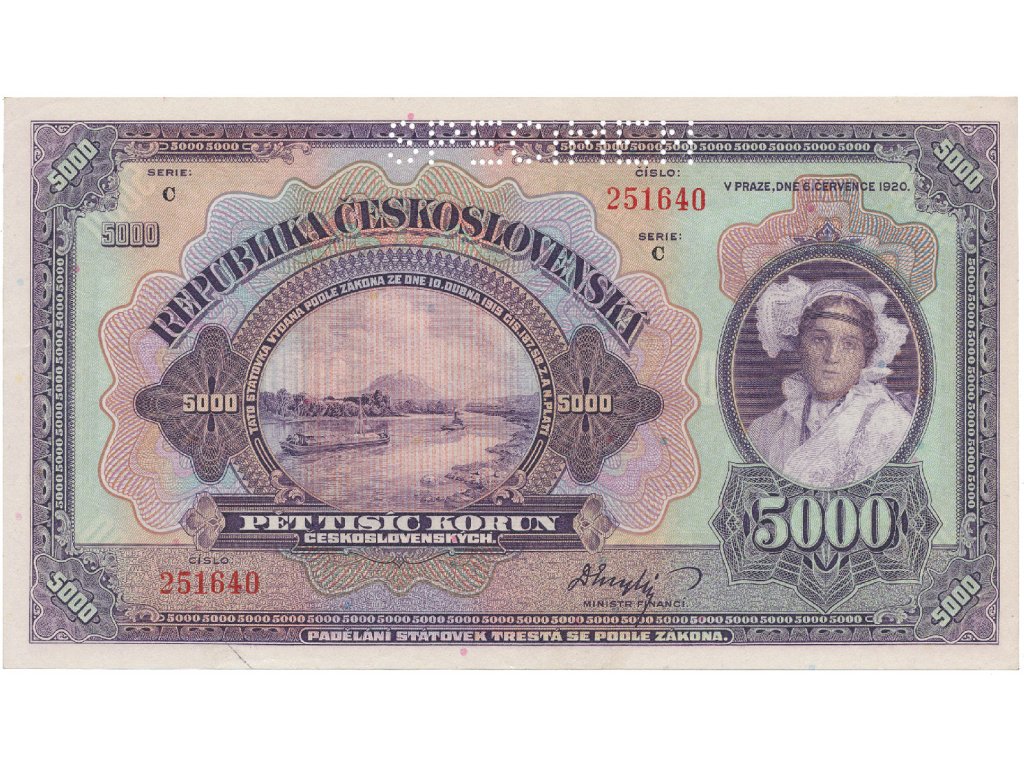 Československo, 5000 Koruna 1920, série C, perf. 1x SPECIMEN, Hej.17bC