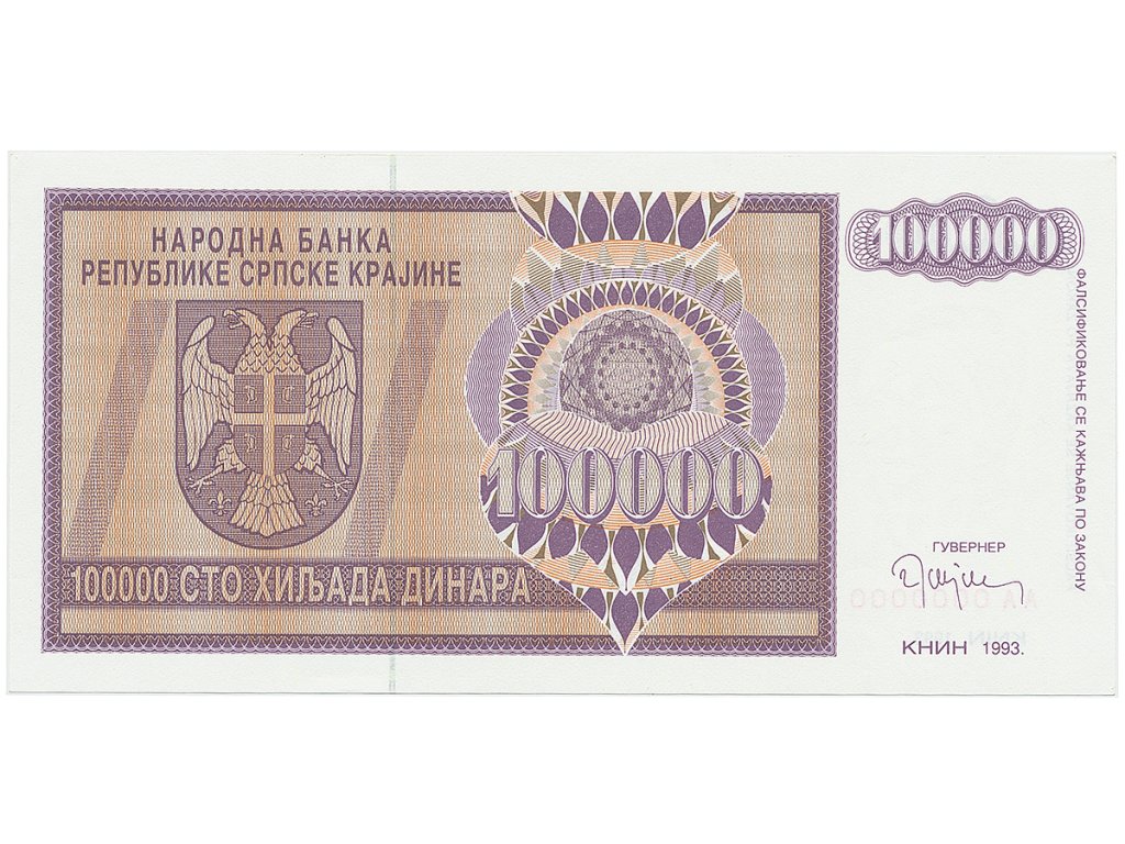 | Nominální hodnota: | 100.000 Dinara |