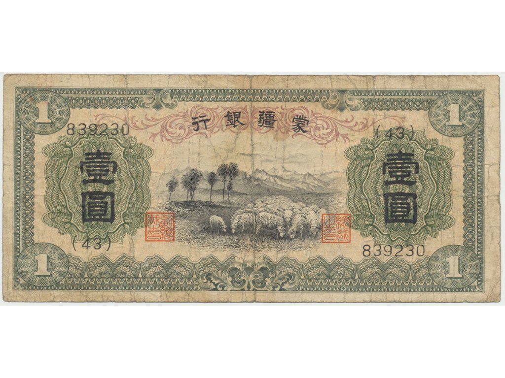 Čína, 1 Yüan (1938), Mengchiang Bank, P.J105