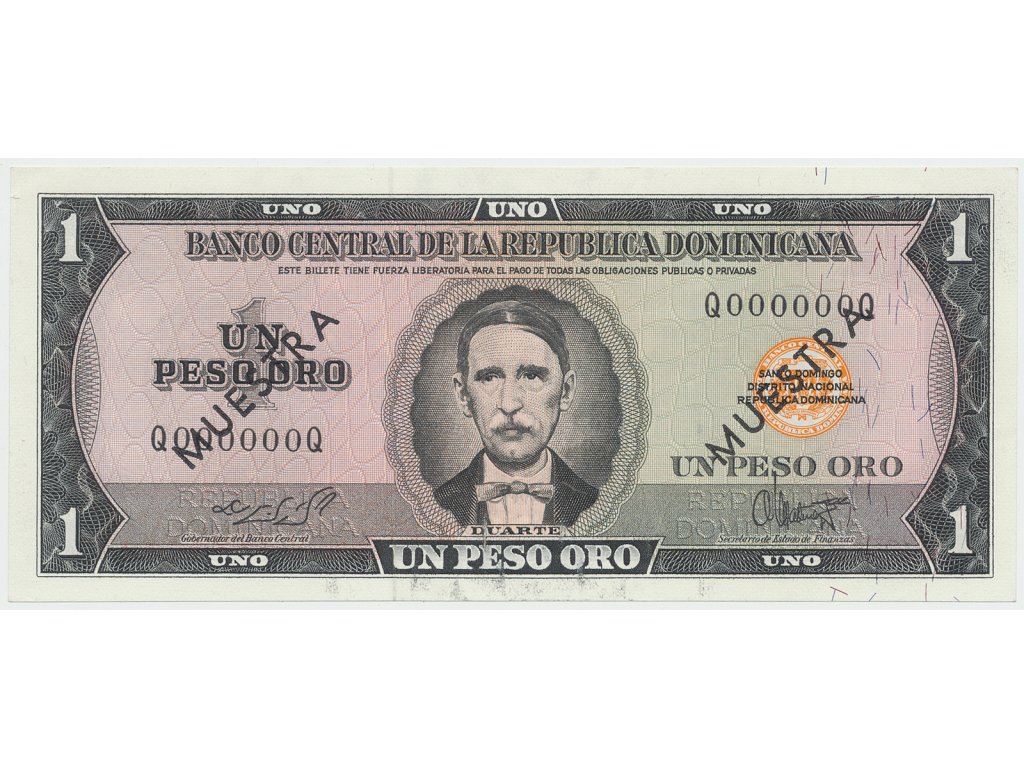 Dominikánská republika, 1 Peso Oro (1964~1974), bank. vzor, Q000000Q, přetisk 2x MUESTRA, P.99s4