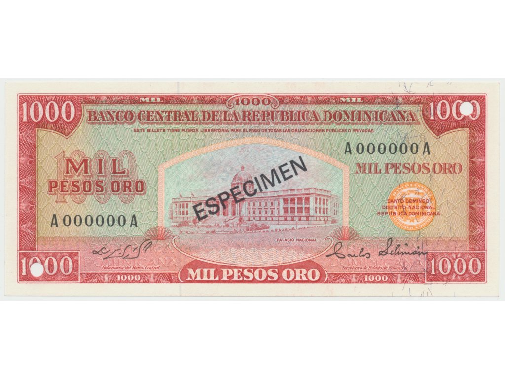 Dominikánská republika, 1000 Pesos Oro (1964-1974), P.106s1