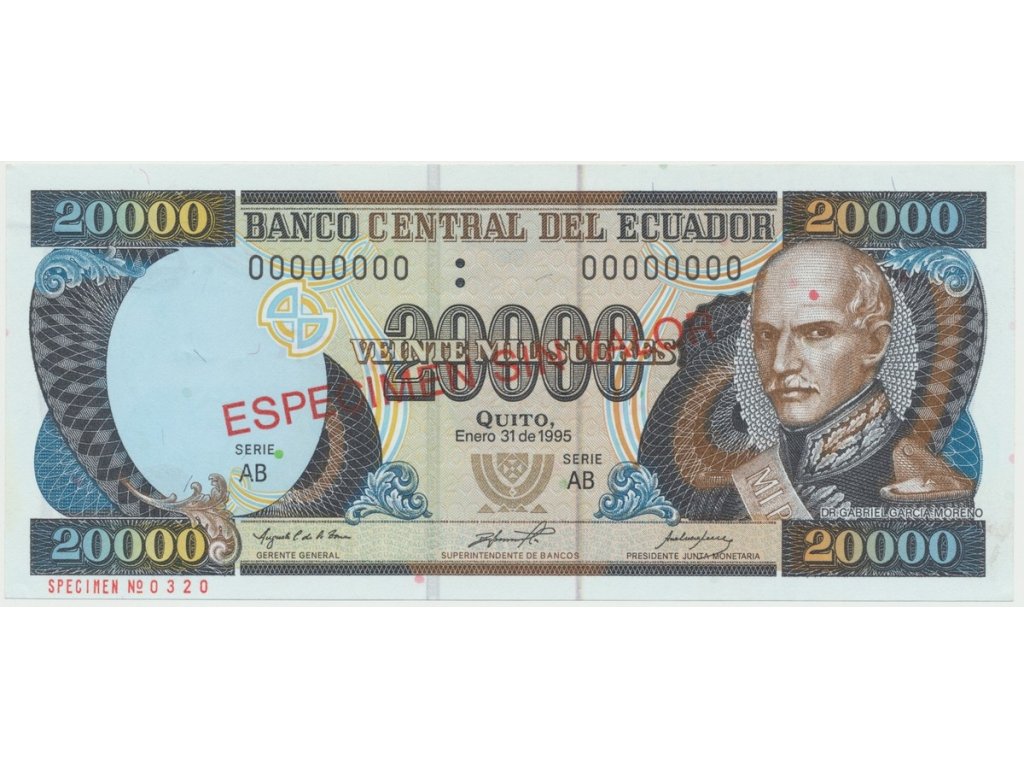 Ekvádor, 20.000 Sucres 1995, anulát - ESPECIMEN, P.129s1