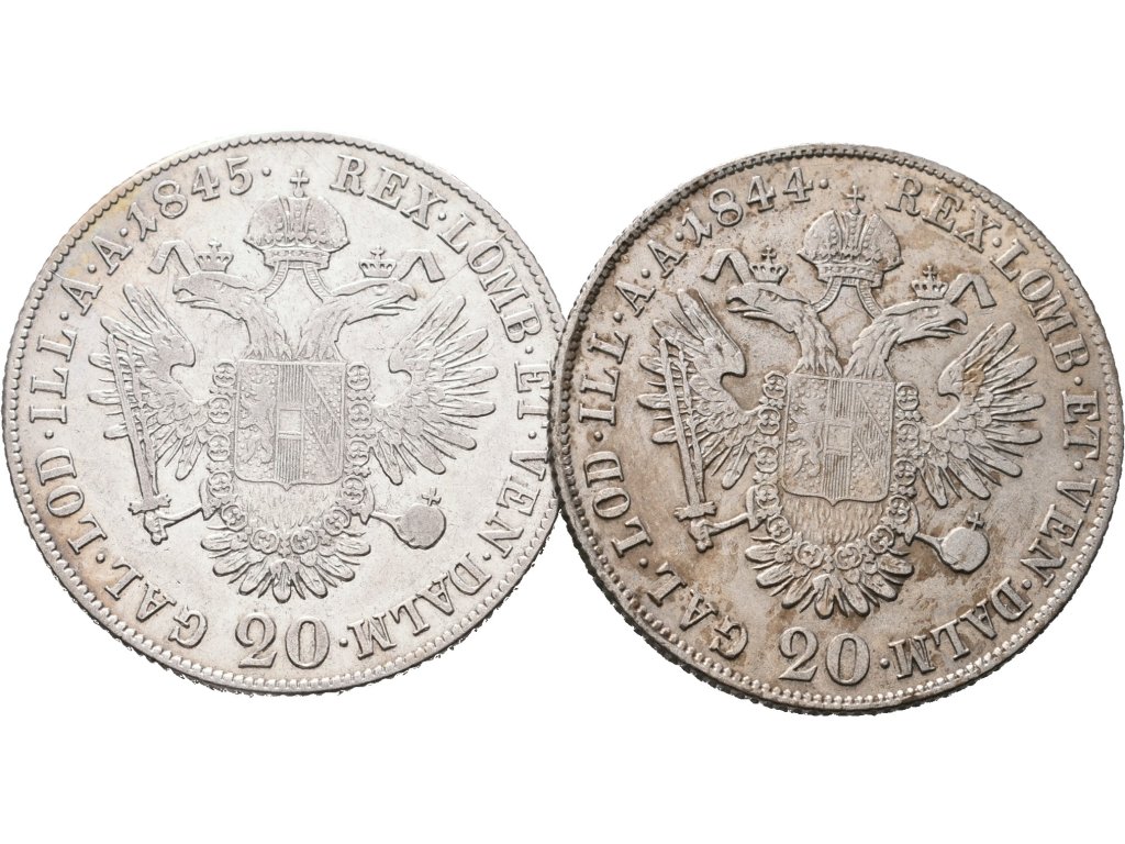 Ferdinand V., 20 Krejcar 1844 C a 1845 C, Praha, lot 2 ks