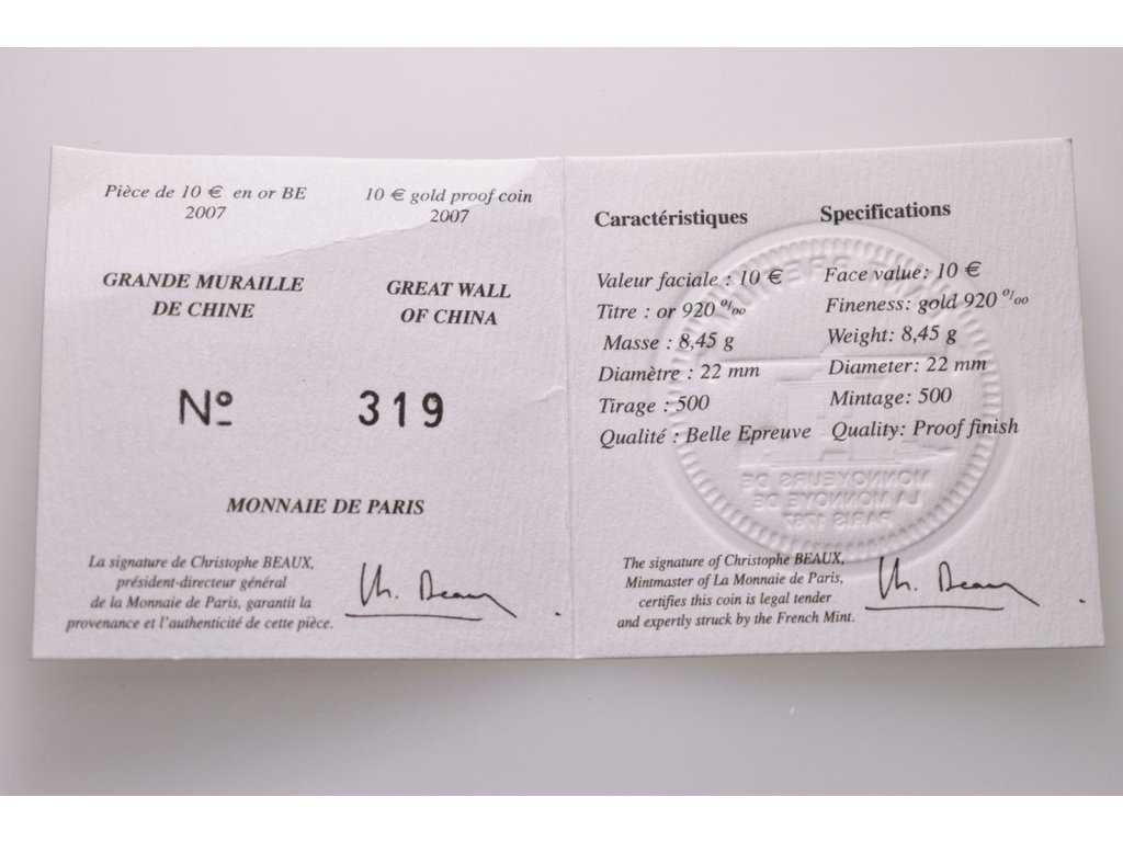 Francie, 10 Euro 2007 - Velká Čínská zeď