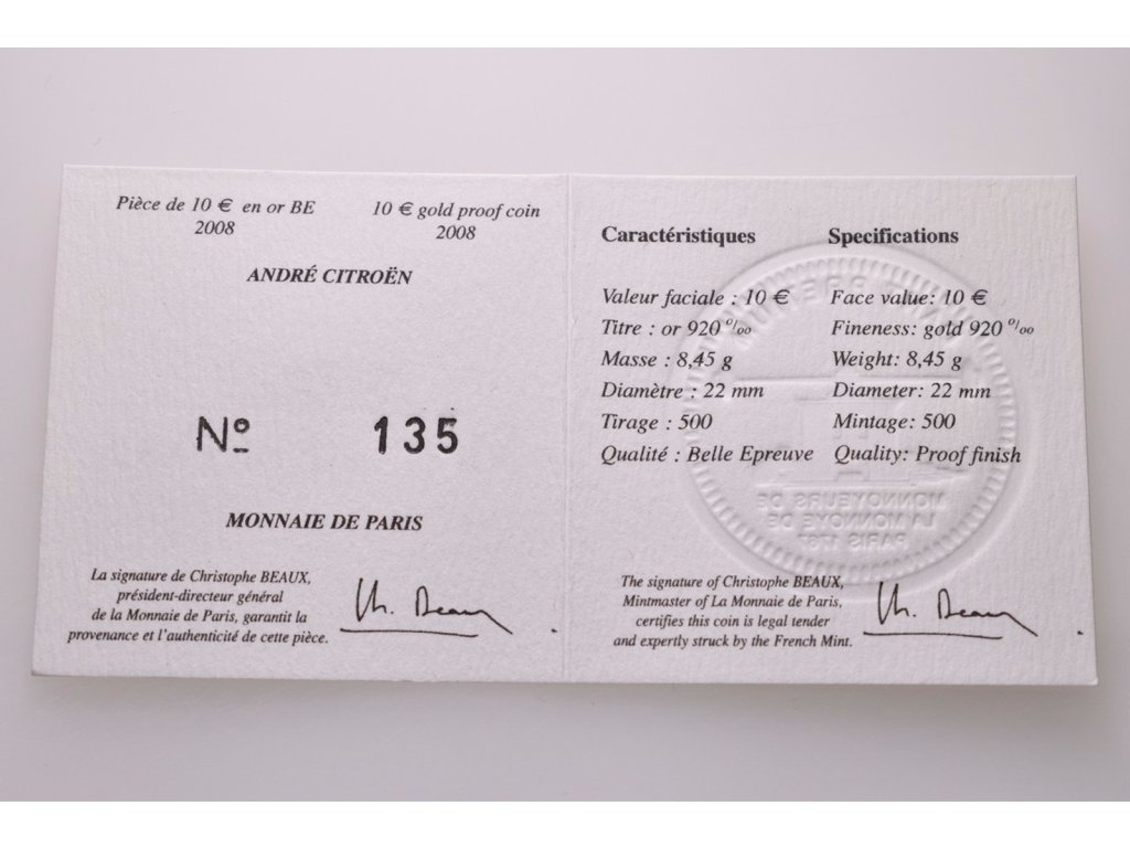 Francie, 10 Euro 2008 - André Citroën