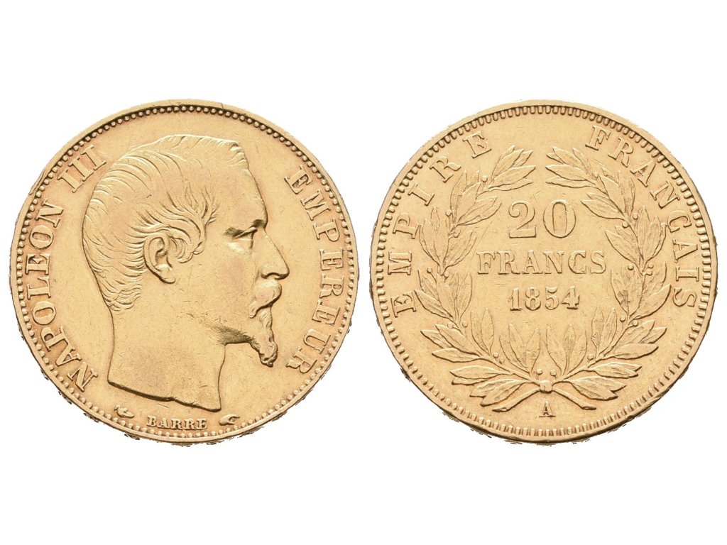 20 Frank 1854 A, mincovna Paříž