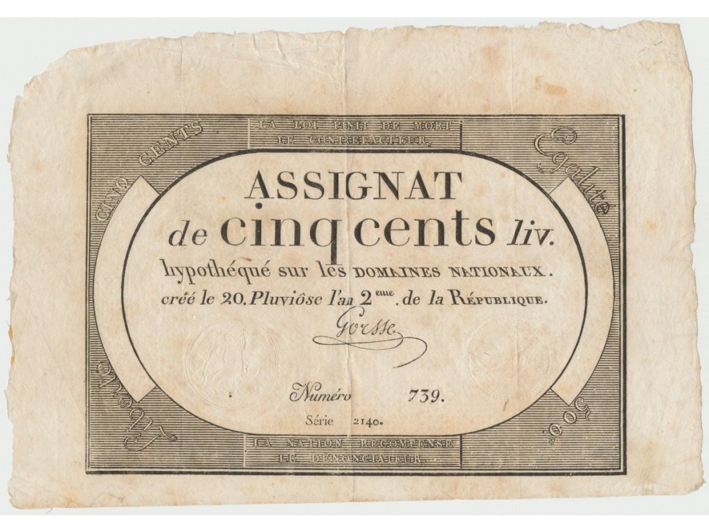 Francie, 500 Livres 1794, P.A77, včetně archového okraje