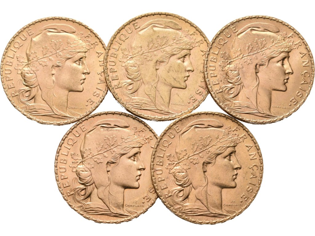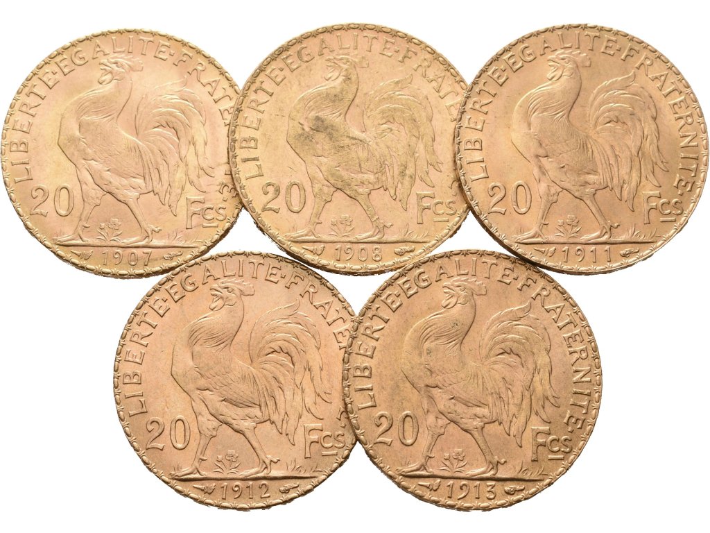 Francie, Investiční set 5 kusů 20 Franků 1907 - 1913
