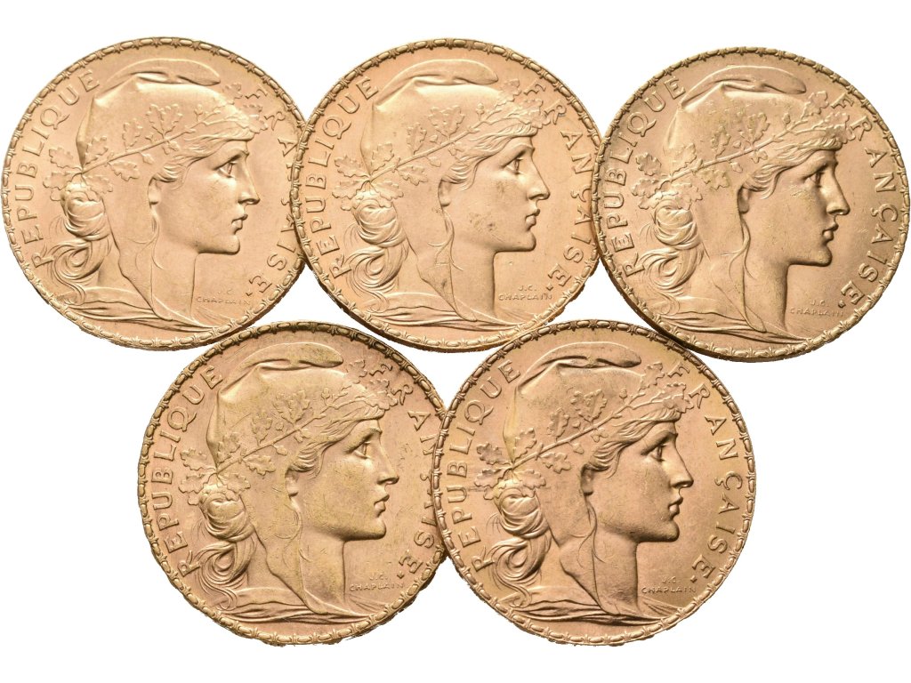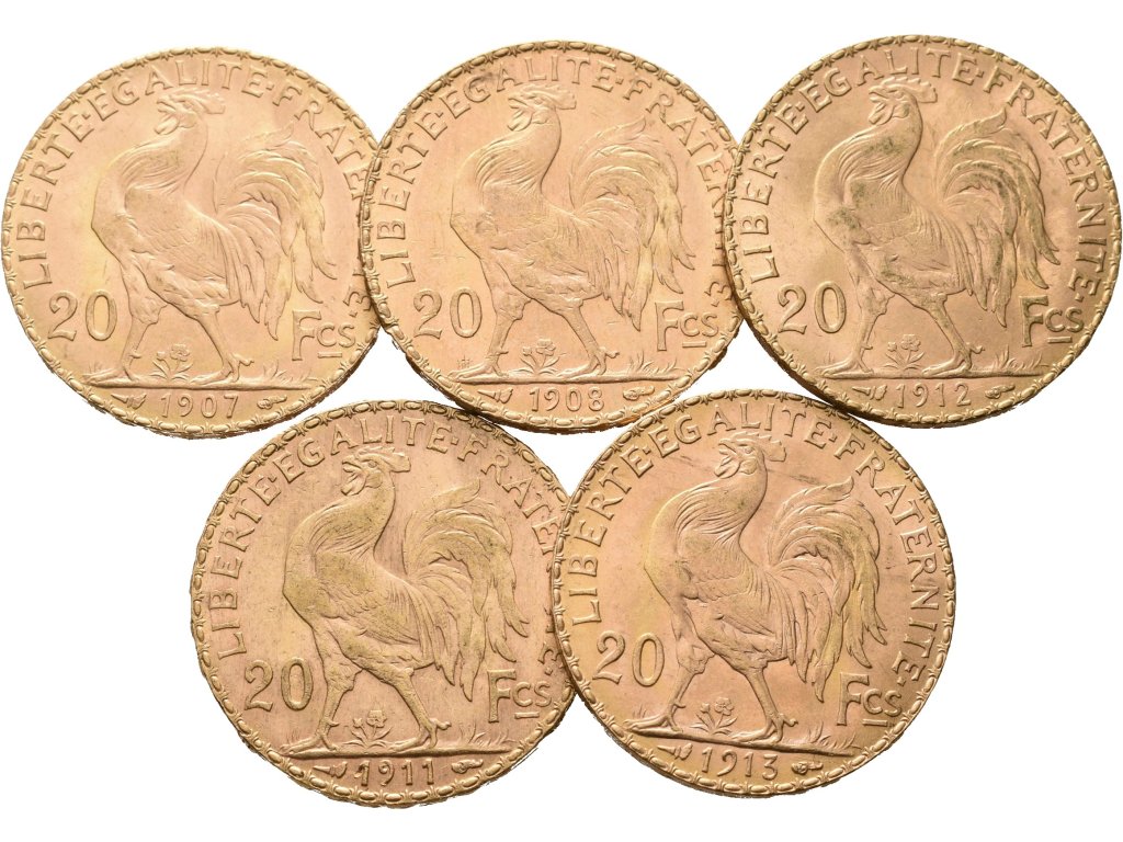Francie, Investiční set 5 kusů 20 Franků 1907 - 1913
