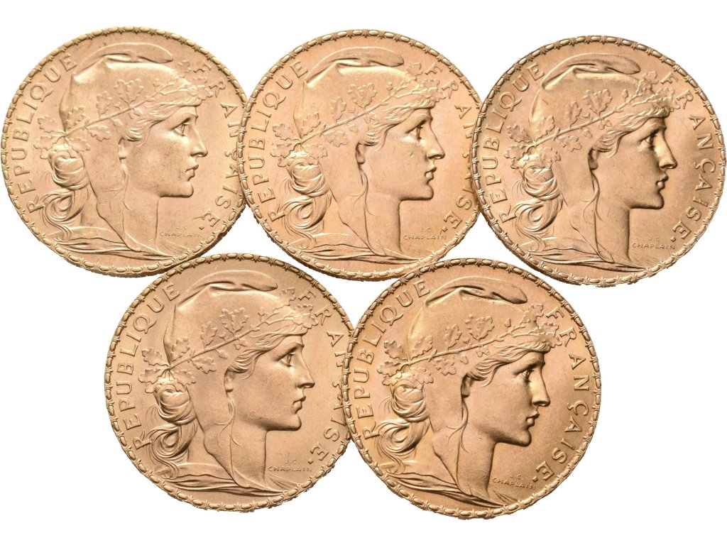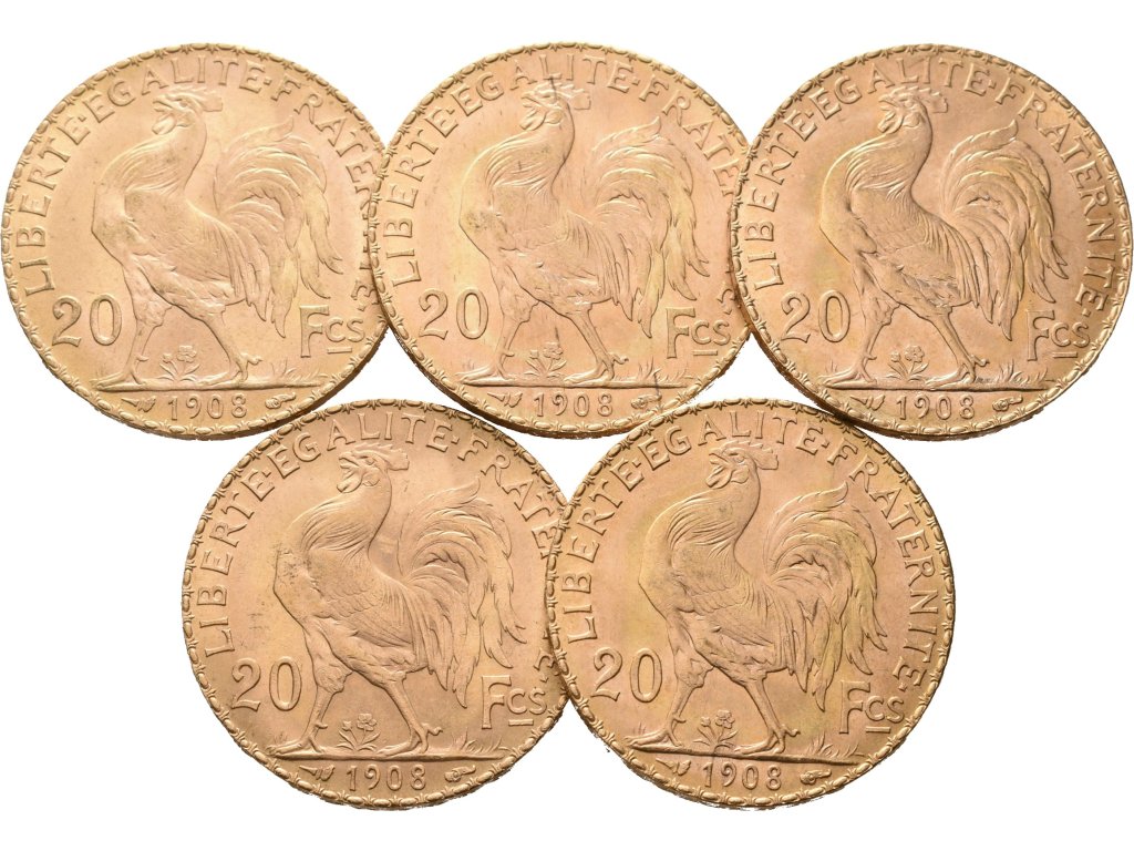 Francie, Investiční set 5 kusů 20 Franků 1908