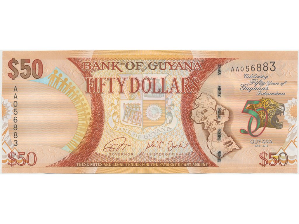 Guyana, 50 Dollars 2016, pamětní - 50 let Guyany, P.41
