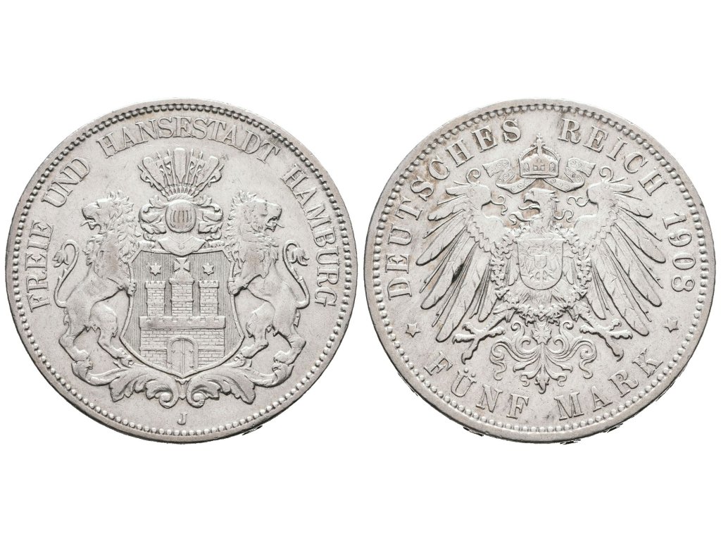 Hamburg, 5 Marka 1908 J