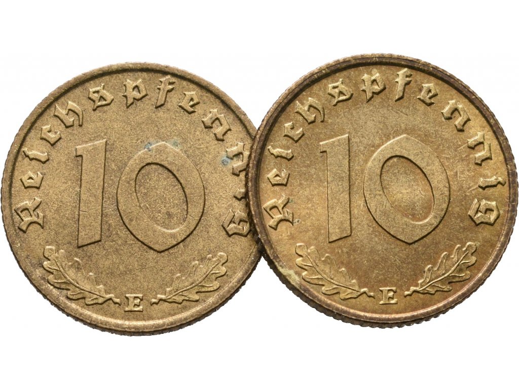 III. říše, 10 Pfennig 1938 E a 1939 E, lot 2 ks